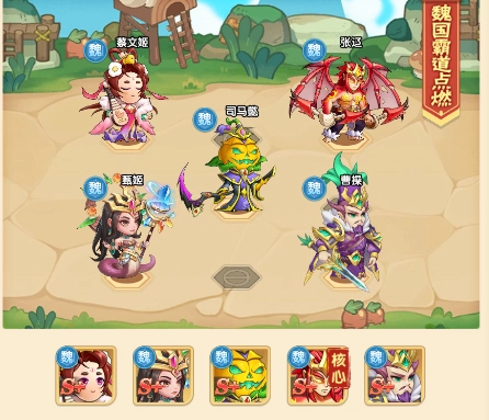 推荐阵容:在八卦阵中在大量点燃伤害和司马懿的群攻加持之下,由曹操和张辽终结对阵