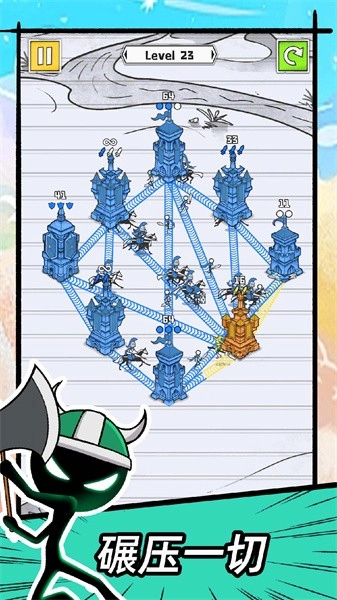 《占下那座塔》是一款火柴人主题的策略塔防游戏,拥有丰富多样的关卡模式,每一关都设有独特的挑战。玩家可以通过合成玩法体验激烈的乱斗,随时搭建防御塔防来完成挑战。游戏采用简约新颖的手绘风格,十分适合在休闲时刻畅玩,快来一起挑战吧!