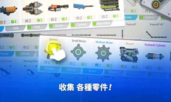 4、你还可以收集大量的道具来组装你自己的坦克。