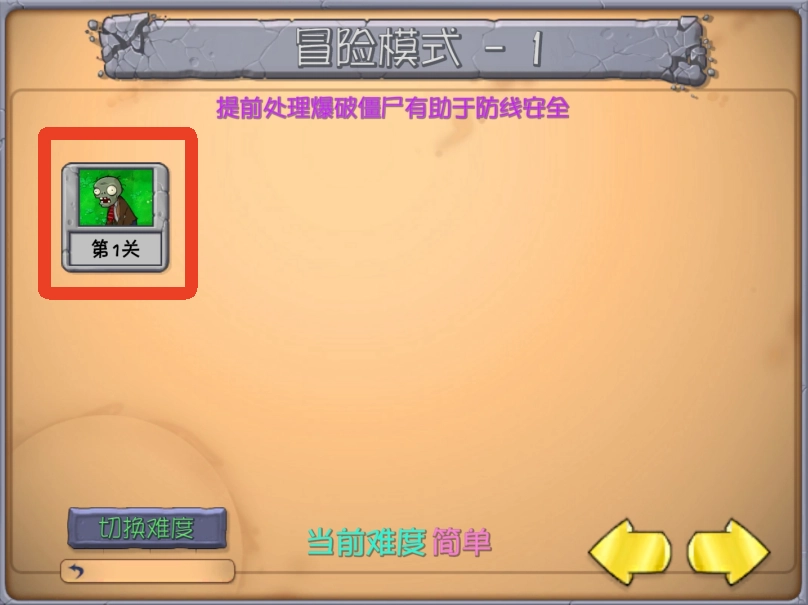 -难度选择:新手建议从简单模式开始,既能积累卡牌,也能熟悉玩法,之后再去挑战正常或困难模式;困难模式虽然初始阳光较多,但僵尸的强度会大幅提高,建议拥有3-5张史诗卡之后再尝试挑战。