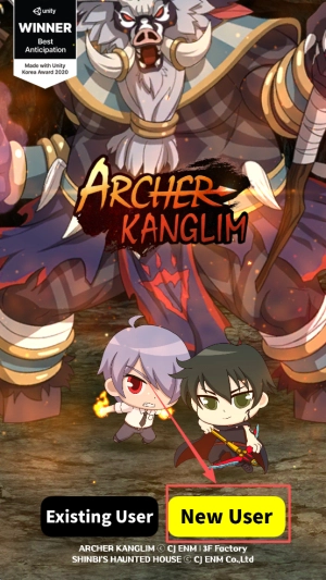 1.游戏启动:主界面点击"newuser"按钮直接进入射箭战斗教学关卡。