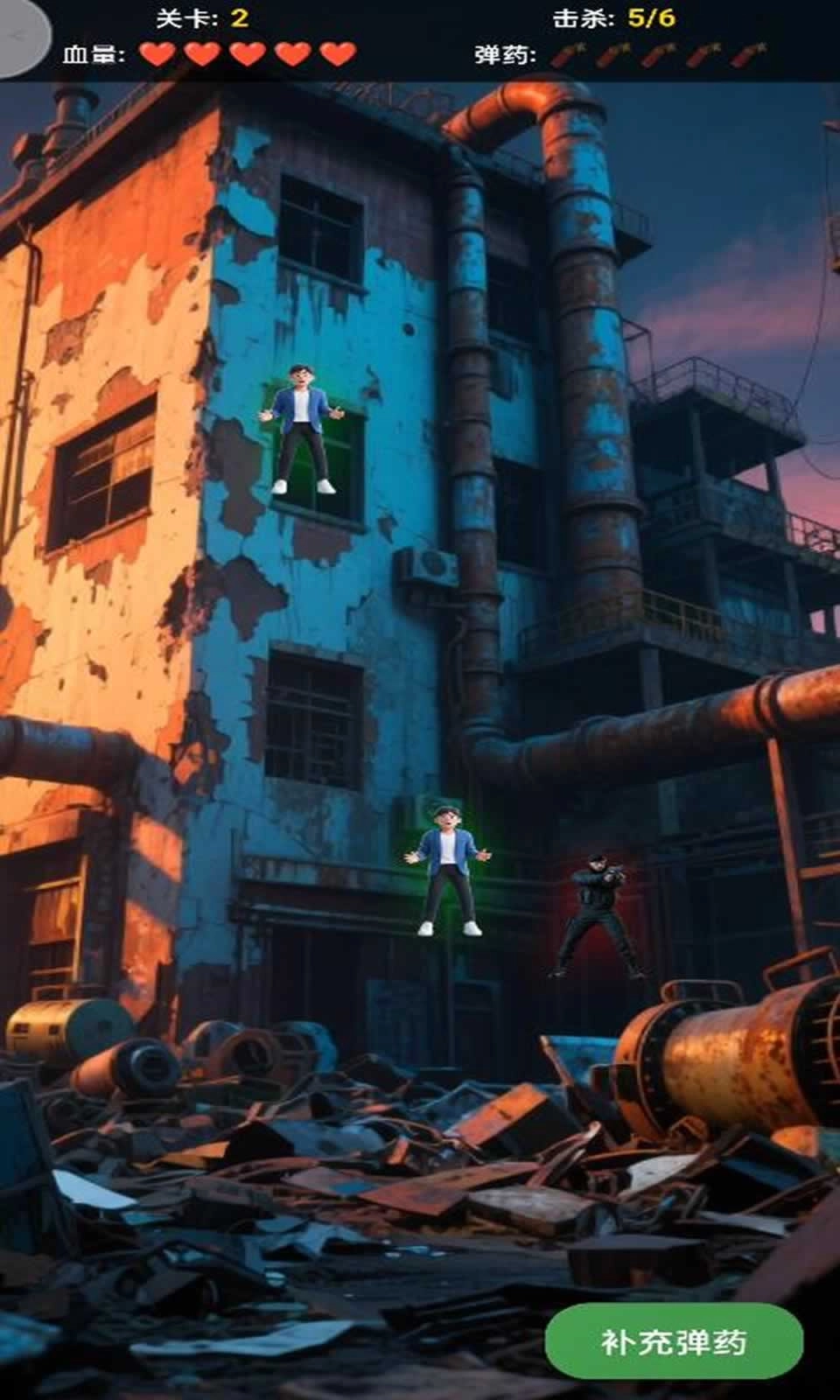 3、当匪徒出现的瞬间,要立刻瞄准并将其击毙,务必避免误伤人质!特别提醒:子弹数量有限,每次射击后需迅速点击“装弹”按钮来补充弹药。