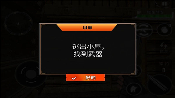 6、进入游戏之前有一个游戏目标,例如:逃出小屋,找到武器。