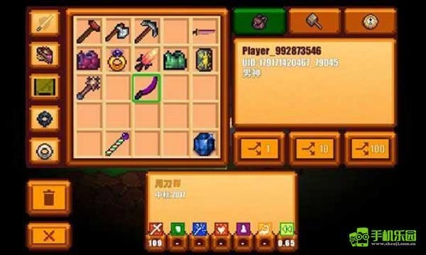 2、该角色前期优势明显,初始自带斧头、镐子与一把攻击武器。其中,武器用于应对野怪,斧头和镐子则可直接砍伐树木获取木材、野外挖矿,让玩家能快速收集基础材料。不过需要注意,这个角色的武器伤害属性较低,仅适合防身使用。