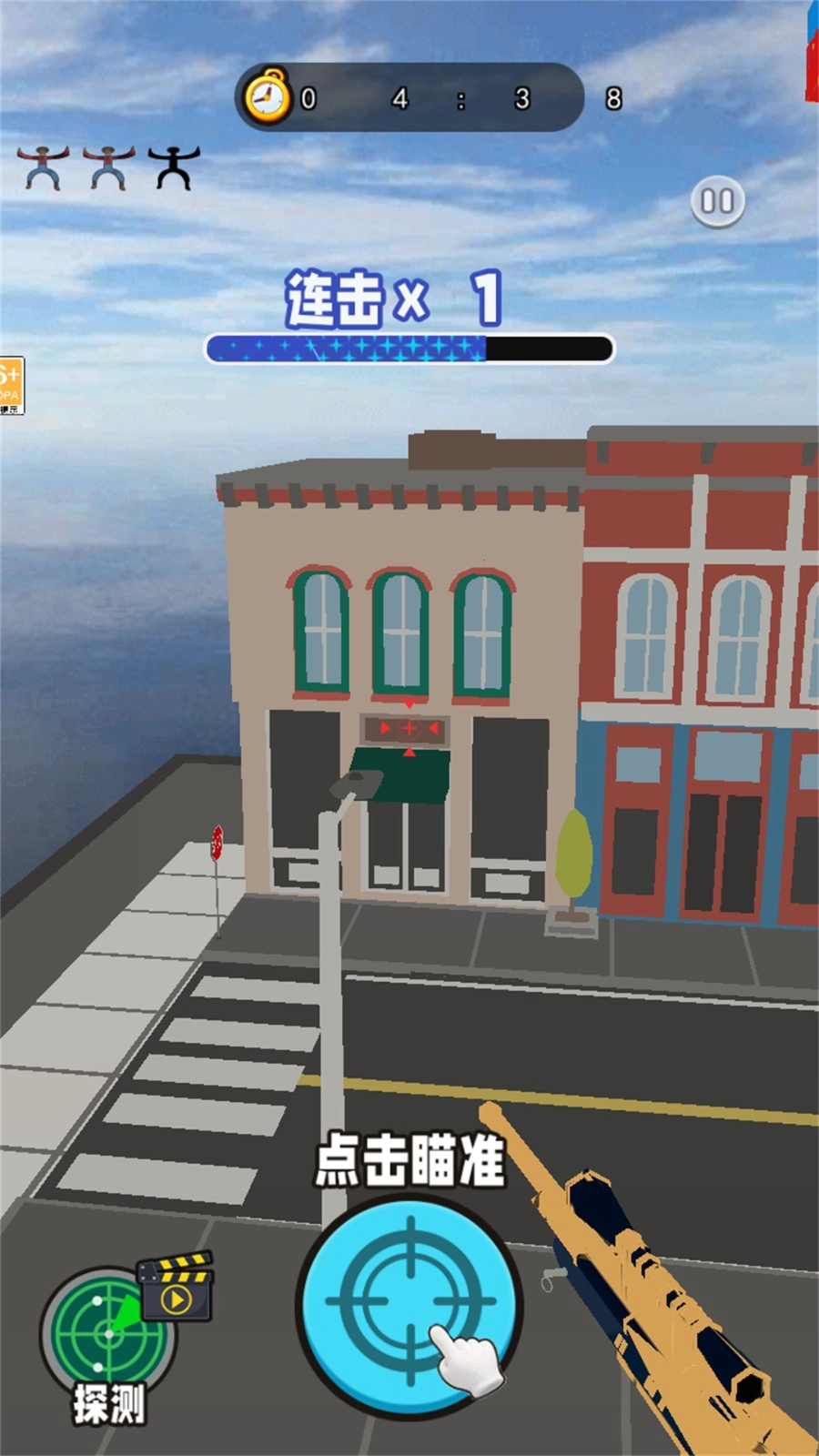 1、执行狙击任务,根据目标类型调整瞄准策略,精准点击完成射击,避免目标逃脱或触发警报。