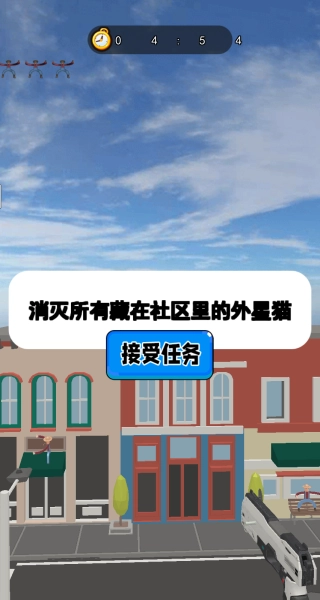 2、以射击约翰为例,完成目标任务,消灭所有藏在社区里的外星猫,接受任务进行挑战。