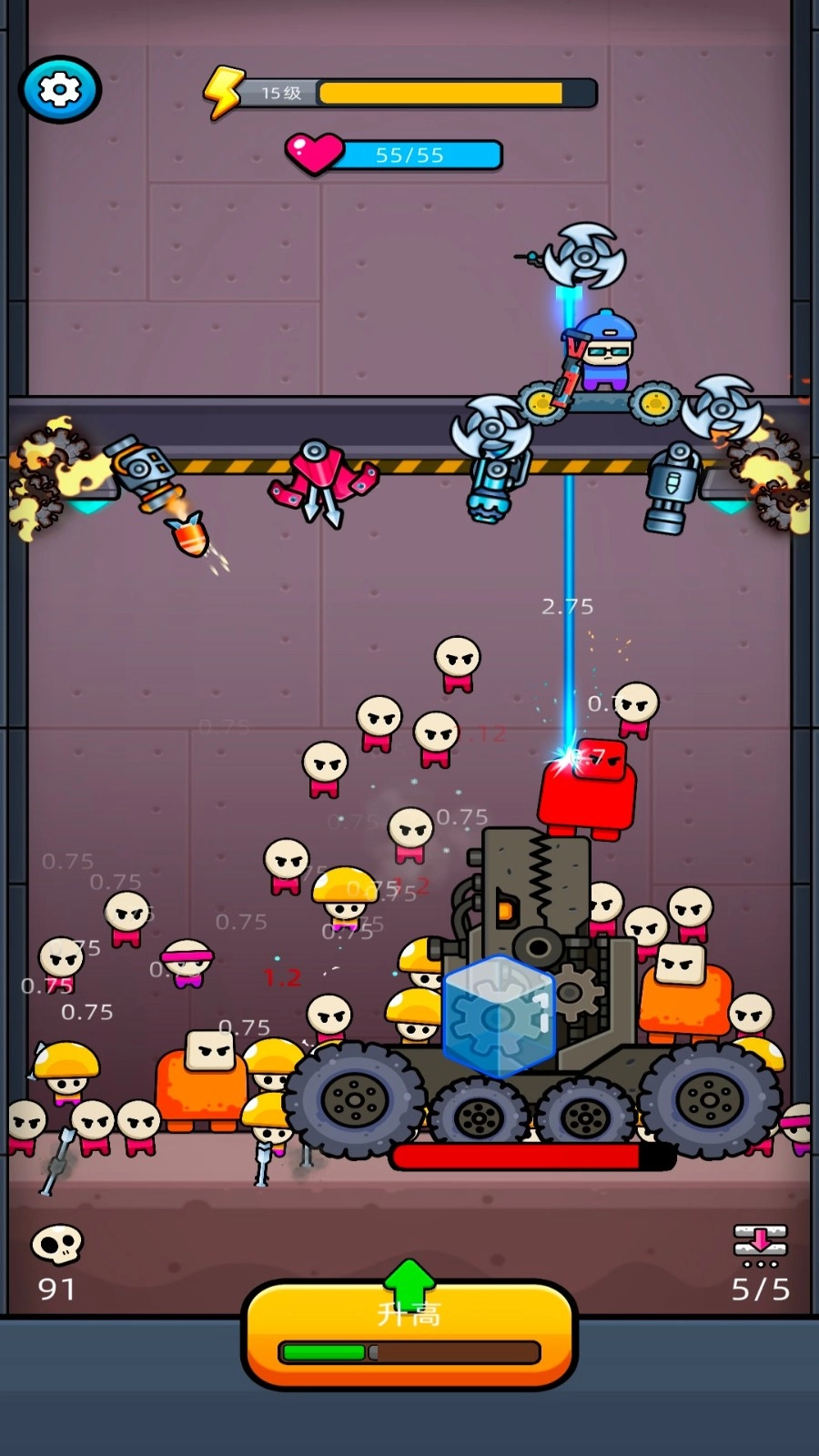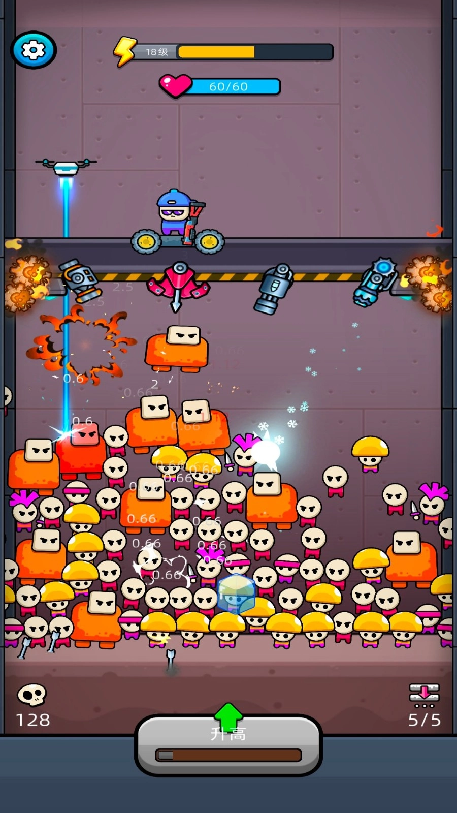 2、滑动屏幕调节升降高度,根据敌人位置切换高低作战姿态,构建基础防御体系。