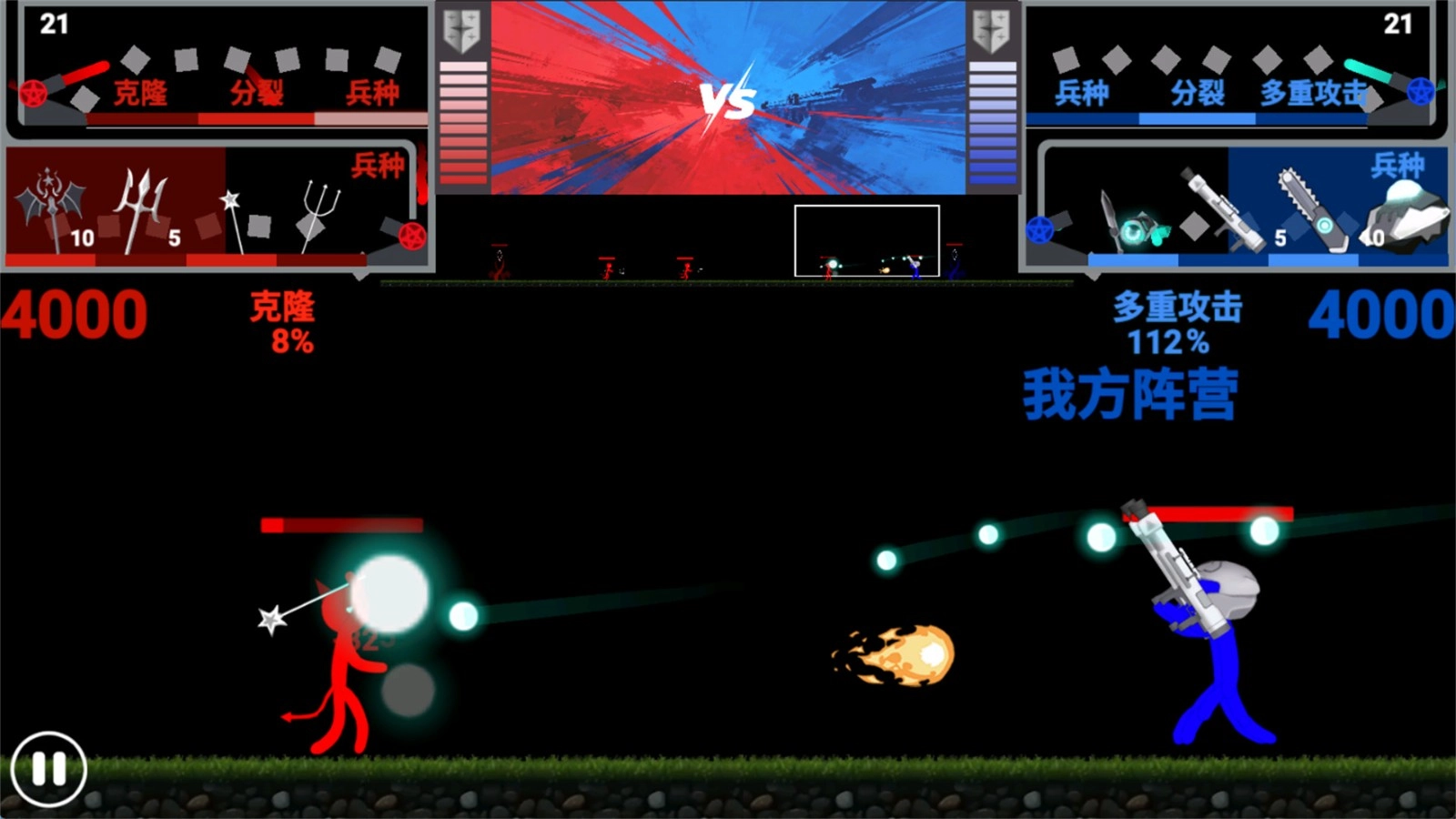 3.极简视觉设计:以火柴人形象减少视觉干扰,让玩家能更专注于策略规划与实时战术调整,从而提高操作效率。