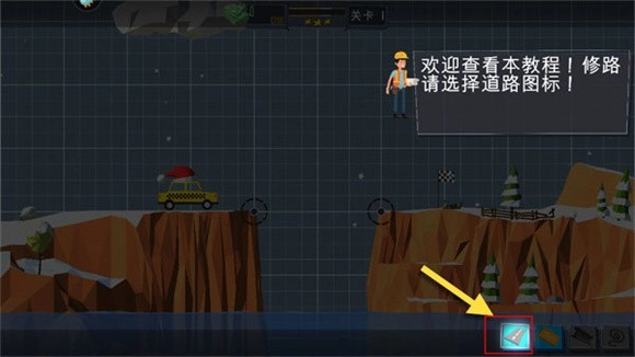 1、启动游戏后会出现一个开始按钮,点击该按钮即可进入搭桥铺路的游戏关卡界面。此时会有新手引导,在修路过程中请选择道路图标。