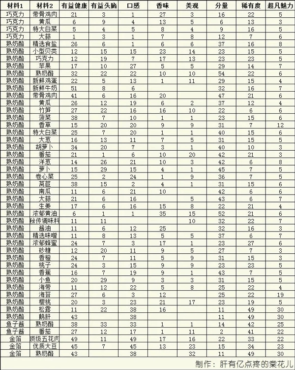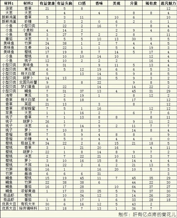 3、此方法适合热衷深度研究的玩家。若追求效率,也可直接参考外部整理的食材属性对照表,快速制定最优配方。